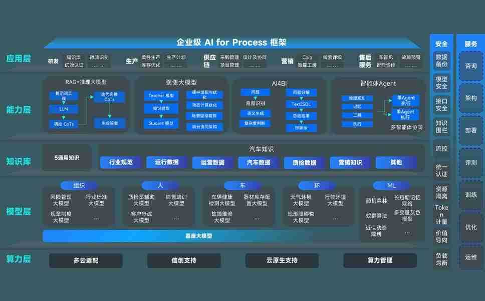 开元ky888问学智车解决方案是一套基于AI技术的汽车行业智能化系统,,,,覆盖从底层算力到顶层AI应用的全栈方案。。。方案由算力层、、、、模型层和应用层组成:算力层,,方案支持多种一体机配置,,,,具备云端灵活部署、、、、多云适配以及动态优化计算资源的能力;模型层,,开元ky888问学平台版提供了企业级AI应用一站式构建与管理平台,,支持基于后训练强化技术的汽车企业专属模型的训练、、评测和运营;应用层,,开元ky888问学DeepSeek版提供包括超级员工、、智能招采、、、、智能营销、、、智能客服、、、、AI for BI等一系列解决方案,,,可助力汽车行业实现数字化转型,,让管理更智能、、响应更敏捷。。