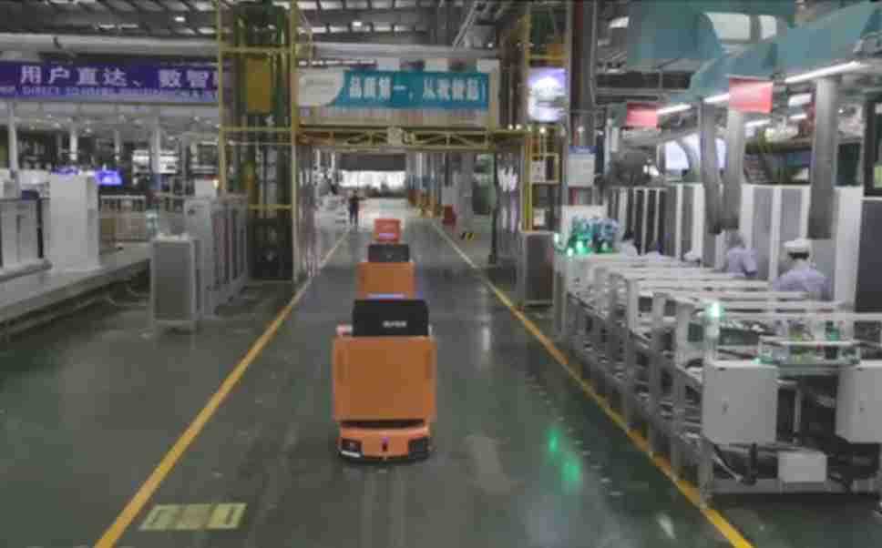 为车载冰箱物流配送打造的智能解决方案,,包含产中物流通过潜伏举升AMR搬运至线边,,产后成品物流智能仓储,,,流程包含产中物流智能齐套入库,,线边安灯叫料AMR智能配送至线边,,,,成品入库、、、出库,,,,通过无人堆高车机器人,,,,智能仓储管理替代人工作业管理,,,,实现更高存储、、、、更高效率、、更具柔性化的解决方案。。